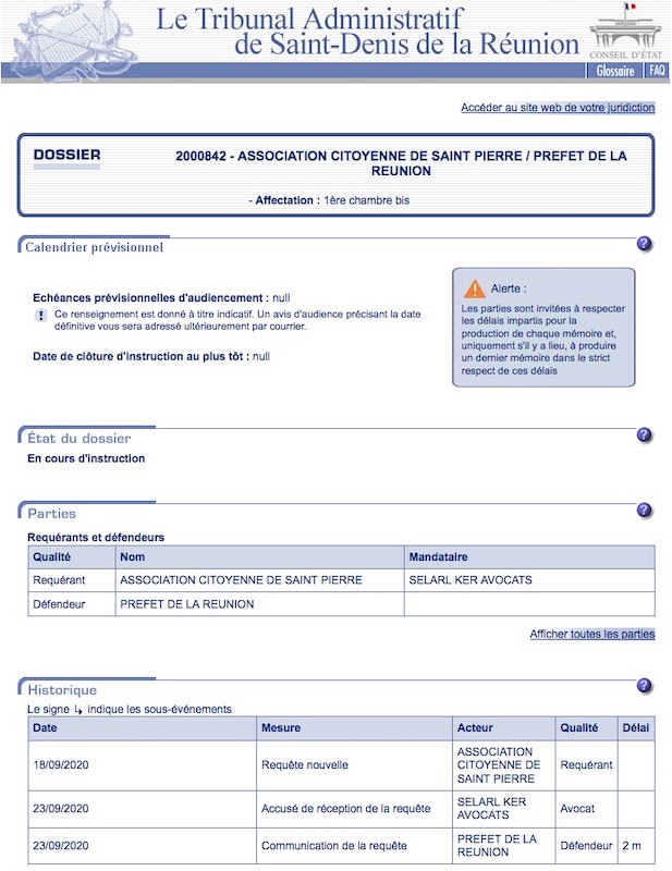 Il aura donc fallu une rencontre avec le cabinet ministériel en août 2020, et un recours au Tribunal administratif de La Réunion en septembre 2020, pour qu’enfin, l’Association Citoyenne de Saint-Pierre-REUNION soit invitée à la réunion de … « clôture de la saison baleines 2020 », le 27 novembre 2020 sous l’égide de M. le sous-préfet de Saint-Paul.