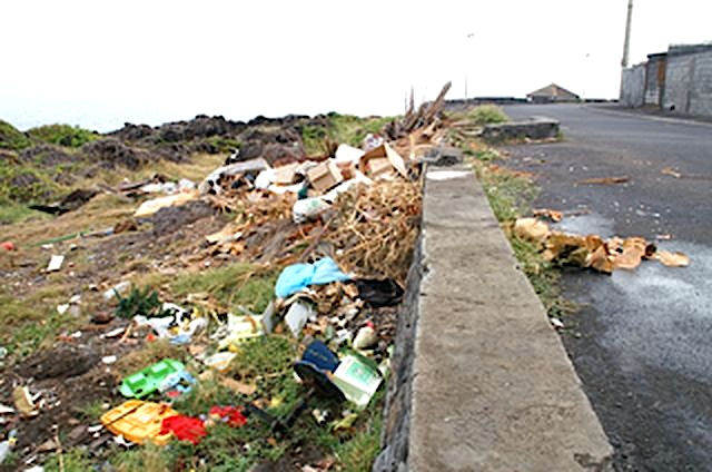 Aujourd’hui le temps était clément c’est à dire gris, le plafond assez bas bref toutes les conditions requises pour visiter Tanambo. Quartier jouissant d’une vue imprenable sur l’océan que nombre de promoteurs investiraient volontiers pour une clientèle haut-de-gamme. Et pourtant ce quartier est l’un des plus « populaires » de Saint-Pierre. Il suffit pour s’en convaincre d’admirer les façades des maisons et autres bâtiments le long de la route « front de mer » et d’autre part l’espace maritime reconverti en partie en décharge permanente.