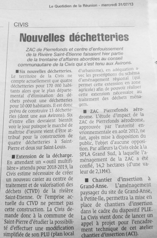 N’hésitez pas à télécharger et lire attentivement notre document  AVIS ACSP-REUNION 2010 PDEDMA-plan-departemental-d-elimination-des-dechets-menagers-et-assimiles), vous y verrez que c’est du bon sens …. mais nombre de politiciens ont tellement de casquettes et d’occupations qu’ils n’ont manifestement plus le temps de la simple analyse …