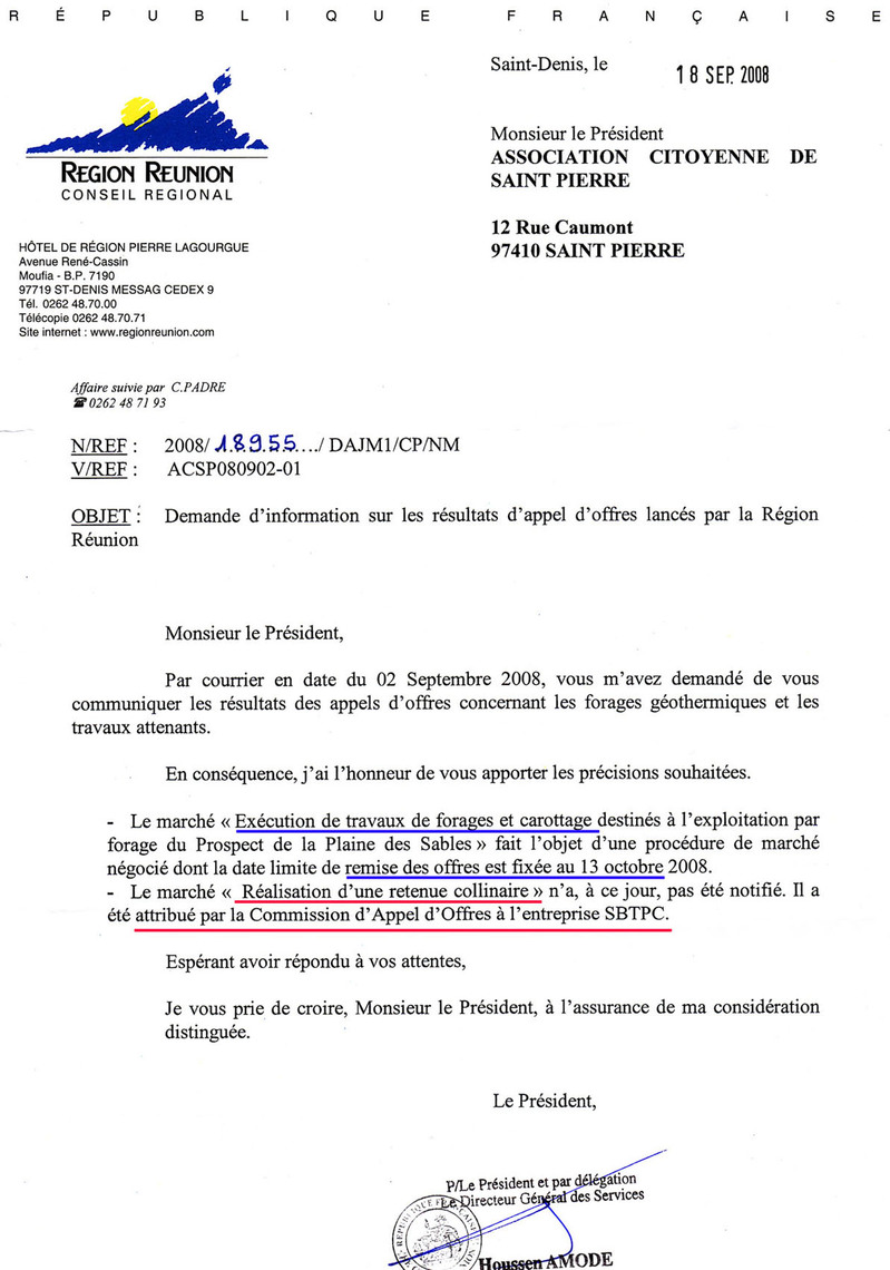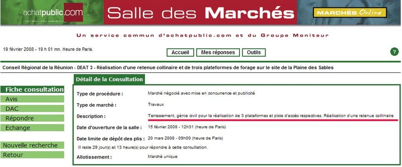 – les appels doffres pour les travaux de forages aient été lancés dès le 6 décembre 2007, soit près de 10 mois avant le début de lenquête publique, et que la Région ne réponde pas à nos demandes concernant le résultat de ces appels doffres ?