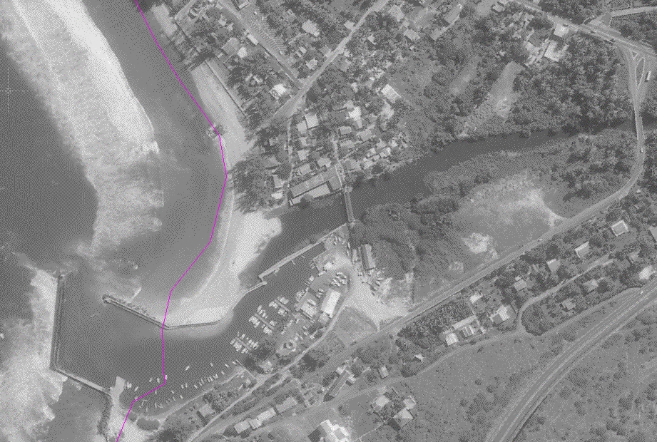 Le même trait de côte reporté, après calibration et superposition sur le cliché pris dans le survol de septembre 2011: