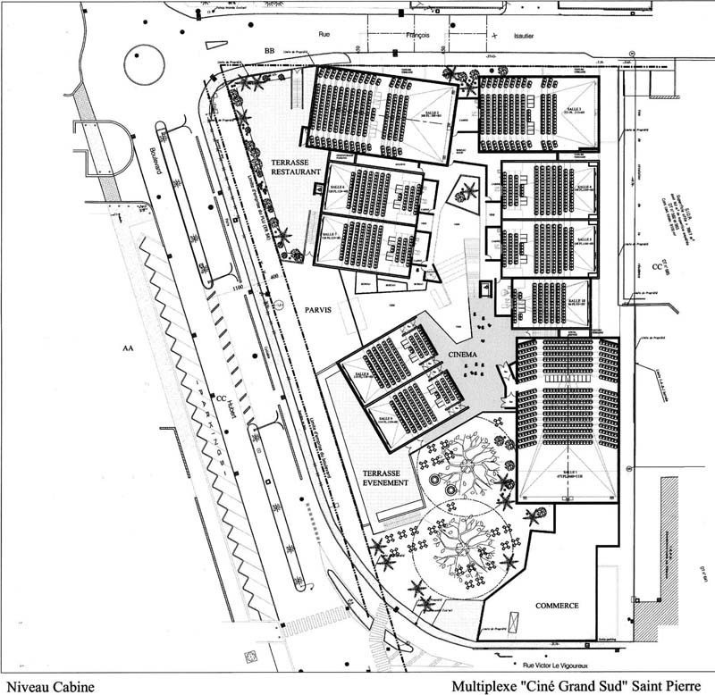 L’Association Citoyenne de Saint-Pierre, qui ne disposait pas jusqu’à vendredi après-midi du 26/11/2010, des plans et les réclamait pour les rendre publics, devait se contenter (en le précisant bien) de simulations sur le projet précédent de seulement 7 salles, et en se basant sur des hauteurs réglementaires autorisées par le PLU. Comme nous venons d’obtenir des plans, nos simulations n’ont plus lieu d’être.