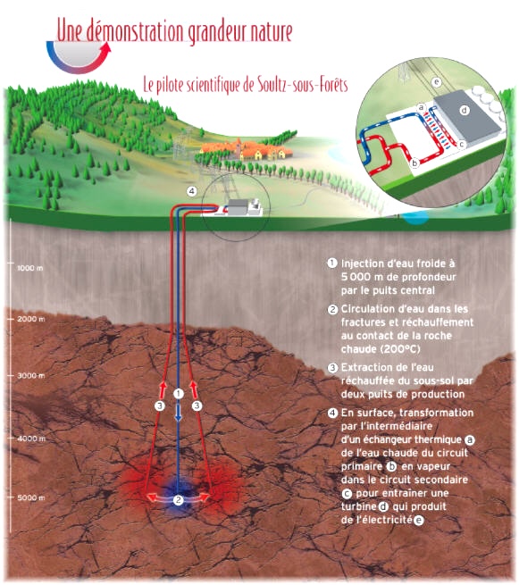 A qui fera-t-on croire que le projet-pilote de Soultz qui a démarré en 1987, en France, dans le cadre d’une collaboration franco-anglo-allemande avec le support de l’Union européenne, de l’ADEME et des ministères allemands concernés est une utopie ? En cas de succès, ce projet de centrale pilote, à caractère scientifique et expérimental, sera suivi par la réalisation en 2015 d’un prototype industriel de 20 MW capable d’alimenter en énergie électrique une ville de 20.000 habitants.