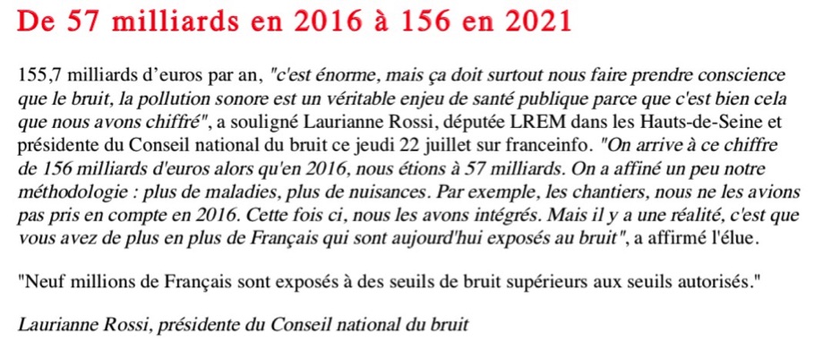 sanitaire et social du BRUIT est de 156 milliards deuros annuels pour la France !