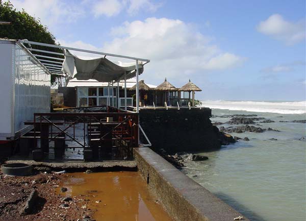 Vous remarquerez la « beauté » du réaménagement avec une « minéralisation » (en clair « bétonnage » ) avec des murs en façade, ce qui fait très authentique et intégré au front de mer de Saint-Pierre .. n’est-ce pas ? Même le camion-bar voisin a pu « minéraliser » le domaine public et réaliser sa terrasse ..