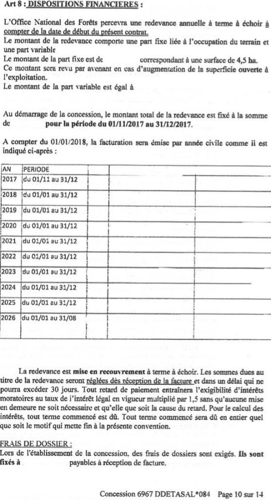 Page 10 de ce contrat, tous les chiffres ont été effacés !