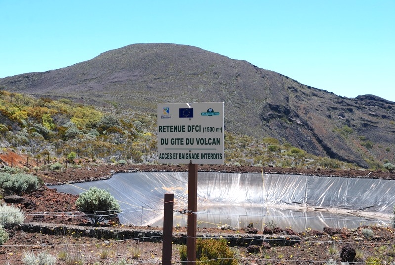Il semblerait que la fuite de cette retenue date de l’effondrement du cratère Dolomieu en 2007. Cette retenue alimente aussi le gîte du Volcan. Au delà de la question du risque incendie, se pose la question des conditions de fonctionnement du gîte actuel. A plus forte raison, on comprend aussi que l’implantation de nouvelles structures d’hébergement doit impérativement être faite en tenant compte de la proximité et des capacités de cette retenue.