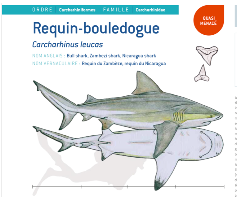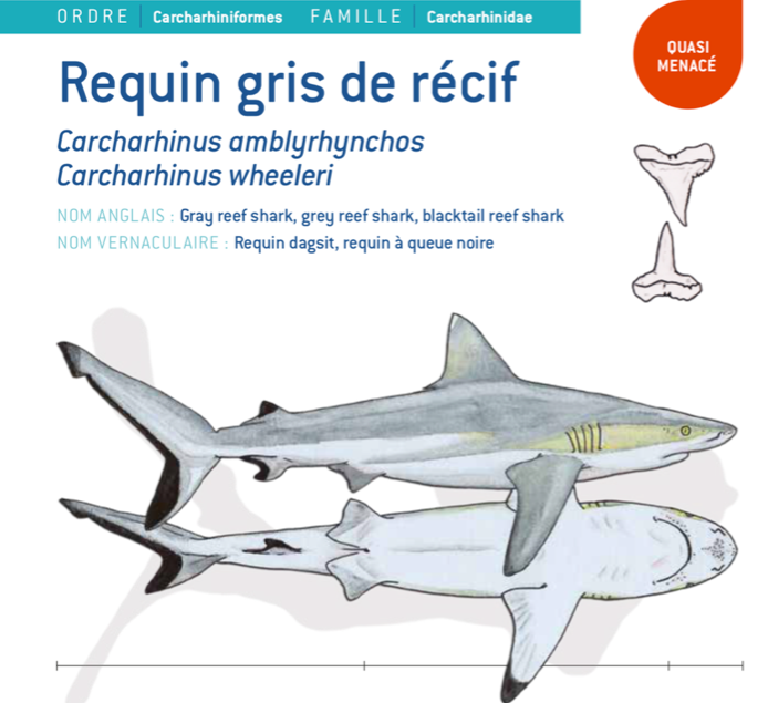 – un requin gris de récif ou un jeune requin bouledogue (puisque les avis qui nous parviennent divergent …) mais au moins ce qui est sûr, ce n’est pas un requin à pointes noires puisque l’on n’observe pas de pointe noire sur sa nageoire dorsale centrale.