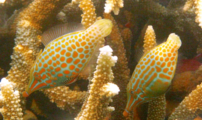 Selon les espèces, le corail peut revêtir de multiples formes et arborer différentes couleurs grâce aux pigments des zooxanthelles (algues microscopiques) qu’il abrite dans ses cellules. Ces algues symbiotiques fournissent la nourriture et permettent la photosynthèse nécessaire à la construction calcaire du squelette du corail. On parle de symbiose lorsque deux espèces se rendent mutuellement service.