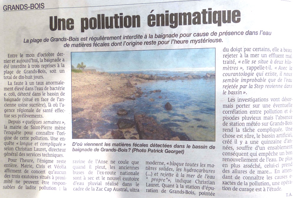 Jeudi 7 mai 2015 : www.clicanoo.re/473250-le-mystere-de-la-pollution-reste-entier.html
