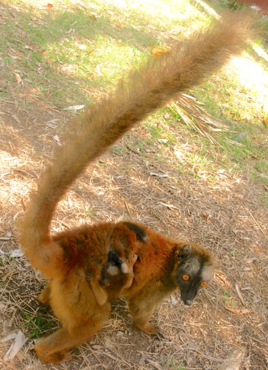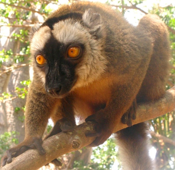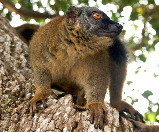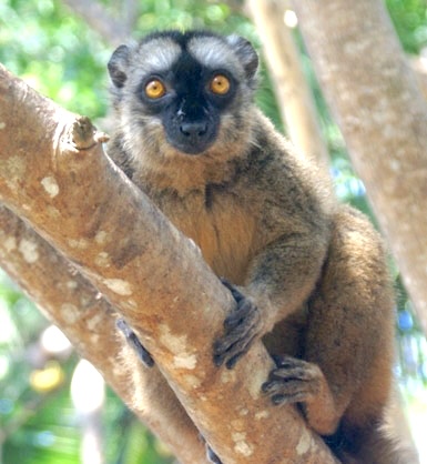 Ce lémurien (Eulemur fulvus mayottensis) est l’unique représentant de son espèce à Mayotte (et pour la France), son habitat naturel est constitué de forêts sèches et humides et sa nourriture se compose essentiellement de feuilles, boutons, fleurs et fruits.