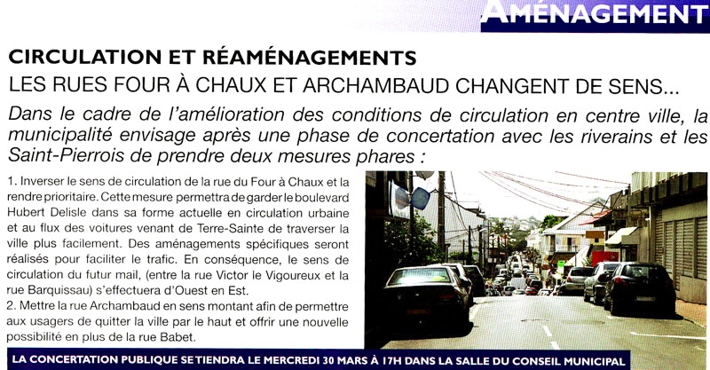– Pour riverains et Saint-Pierrois, rue Four-à-chaux et Archambaud (changement de sens ?)
