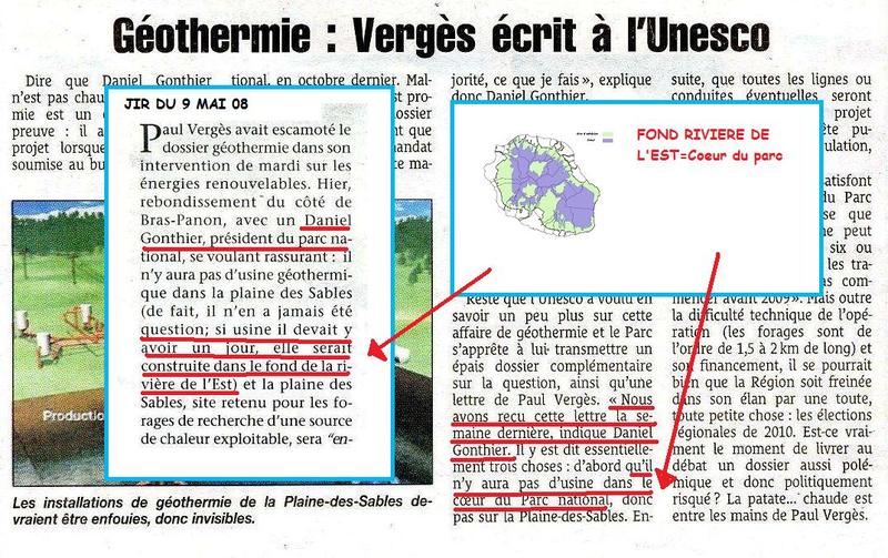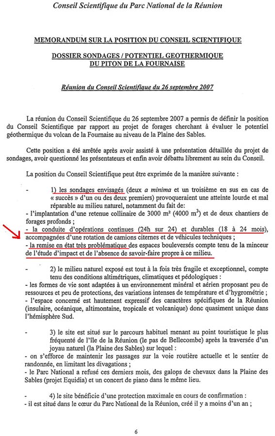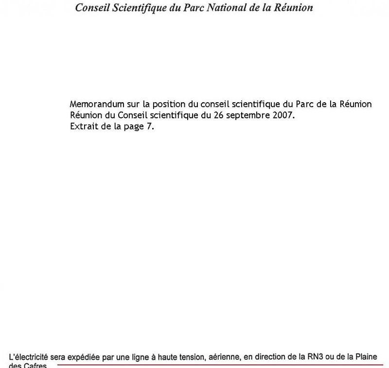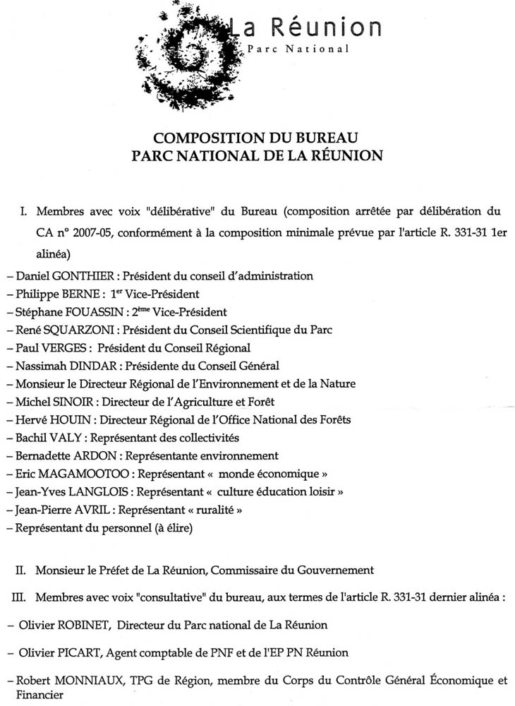 Quant à la décision du Bureau du Parc national Réunion, mentionnée par P. Berne, qui a validé les forages le 17 octobre 2007, cette décision n’a même pas fait l’objet dune présentation aux membres du Conseil d’administration !