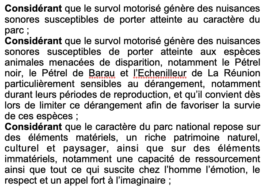 Il y a pourtant eu un rapport de l’autorité nationale indépendante ACNUSA en 2022 mettant en évidence une situation problématique de pollution sonore hélico à La Réunion, il y encore eu une réaction importante des participants au projet d‘arrêté portant réglementation du survol motorisé et des déposes en coeur du PNR, mais la Direction de ce parc national s’en fiche complètement !