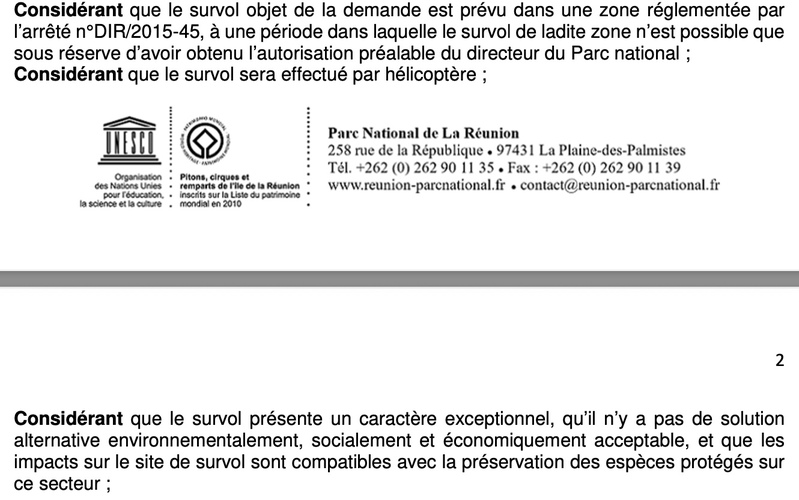 A tel point que le directeur du parc national Réunion continue à autoriser la dépose en hélico au sommet du Piton des Neiges, pour de la photographie, et ce en pleine saison de reproduction de pétrels !