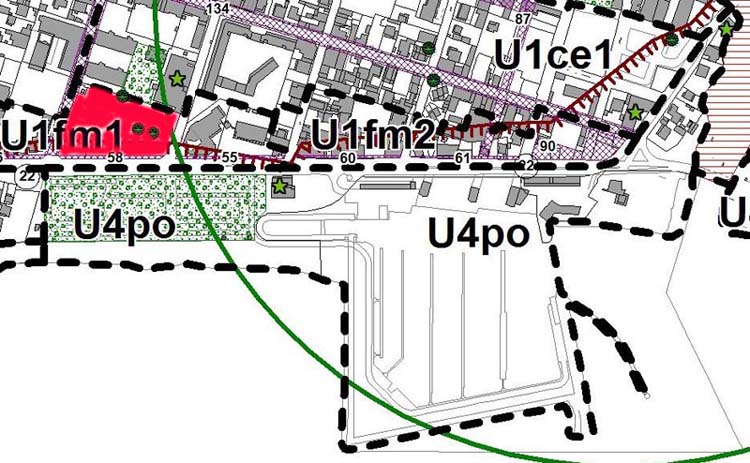 En rouge, plus de 8000 m2, zonage du multiplexe projeté.