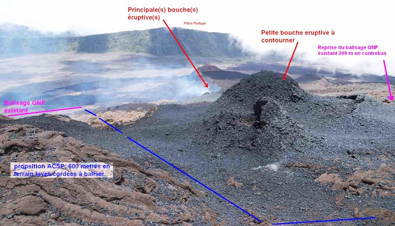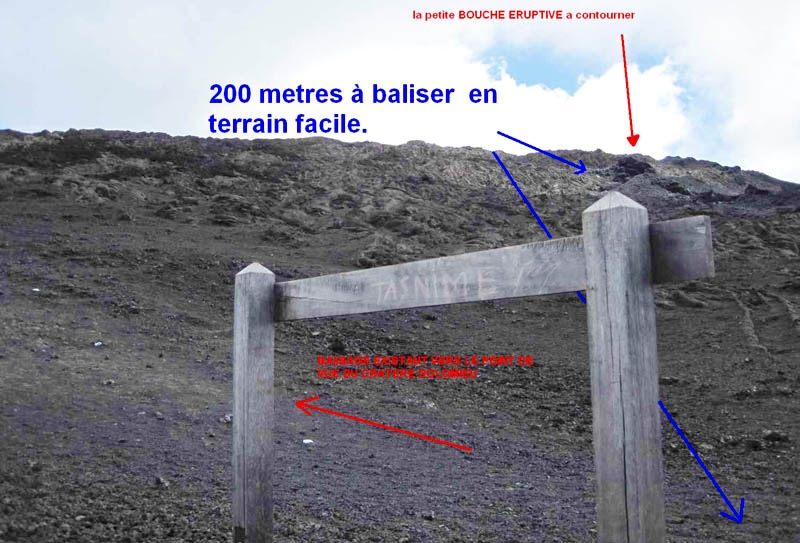 Il apparaît que ce balisage sur environ 600 mètres, peut être réalisé rapidement, pour le plus grand bonheur de notre population (fan de son volcan) et des touristes nombreux en cette période de haute saison.
