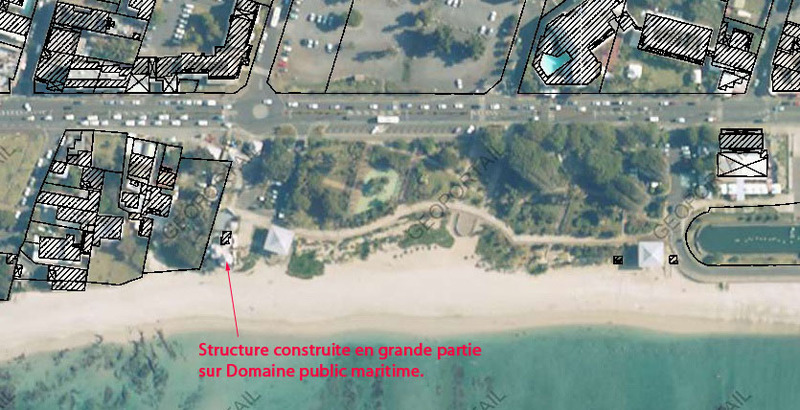 Il faut savoir que le bâtiment Alizés Plage est en partie situé sur le domaine public maritime, ce qui explique qu’il peut disposer d’une autorisation pour son bâtiment, mais il ne faut quand même pas abuser !