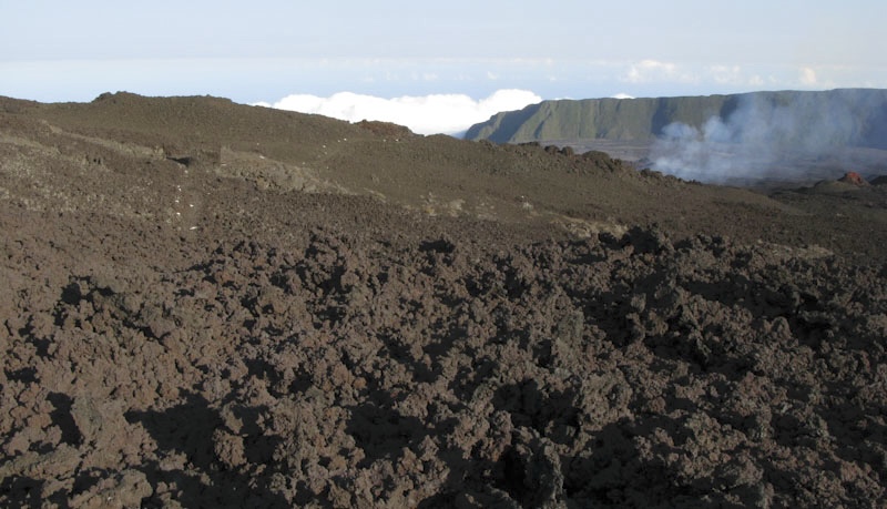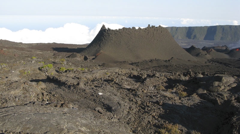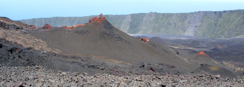 A 2h-2h30 de marche, après avoir passé le Rivals avec sa pancarte, voici un magnifique cratère marron et rouge, on le longe à droite en descendant et l’on retrouve le balisage en regardant ensuite à gauche.