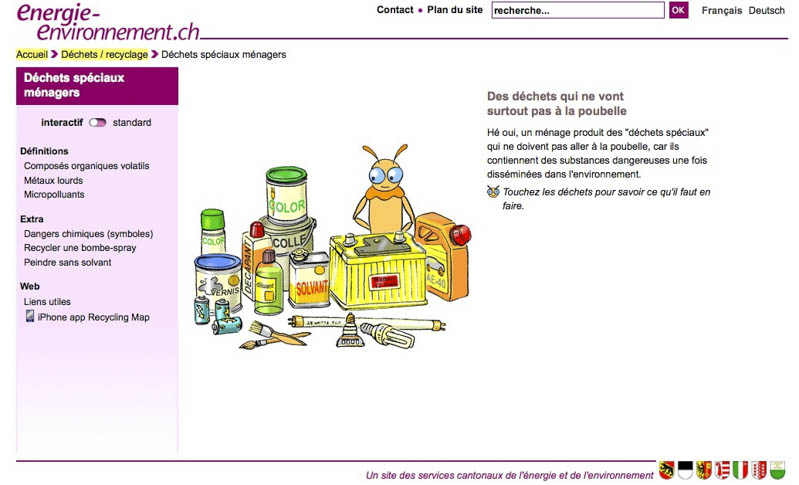 En Suisse, c’est très clair pour la gestion des déchets ménagers spéciaux : http://www.energie-environnement.ch/dechets-recyclage/dechets-speciaux-menagers