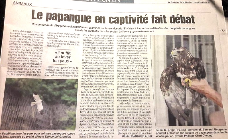 Voici un cas d’espèce avec le comportement de la DEAL REUNION, accompagnée du « conseil scientifique régional pour la protection de la Nature » qui, lui (excepté 1 membre qui s’y est opposé), a osé donner un avis favorable à la détention de papangues au fauconnier qui a débarqué à la Réunion, ce qui correspond pourtant à déroger à un arrêté ministériel, rien que ça !