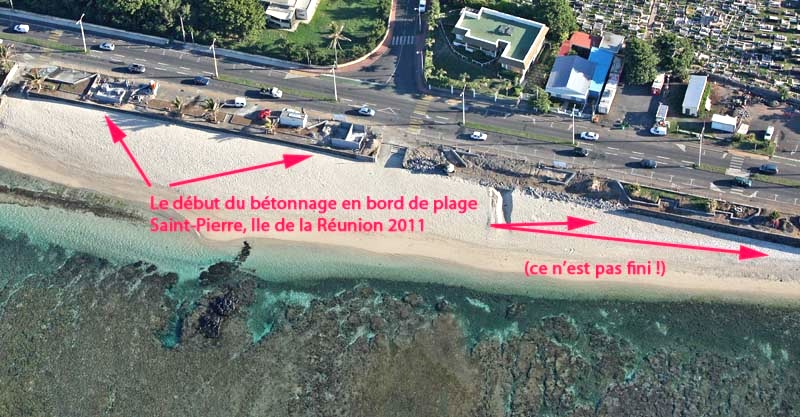 A Saint-Pierre, bétonnage bord de sable (Photo aérienne Hervé Douris)
