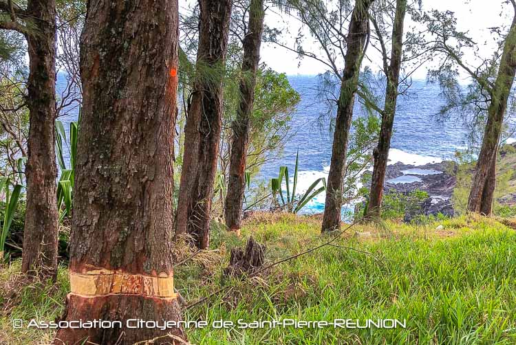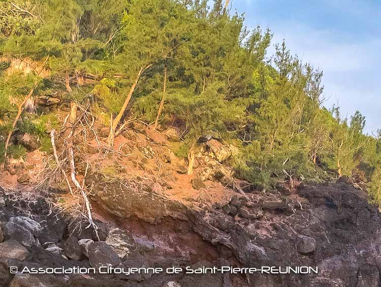 Cette responsable du CL tente aussi de se dégager de toute responsabilité en cas de chute d’arbre annelé qui tomberait en fin de vie. Cela est très étonnant alors que le site qui domine l’îlot de Manapany est un site qui peut être fréquenté par des marcheurs et des pêcheurs.