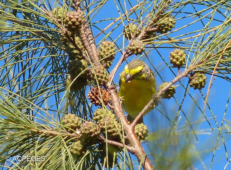 Serin du Mozambique (très prisé pour son chant), quasi disparu de la Réunion. Exploitant les graines de filaos dans son alimentation.