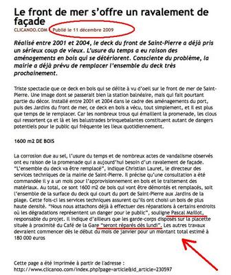 Suite à notre intervention au service Communication Mairie, et à nos courriers dans tous les médias, l’article du JIR du vendredi 11 décembre 2009, qui donnait par ailleurs la parole au Directeur des services techniques de la ville de Saint-Pierre, précisait, nous citons :
