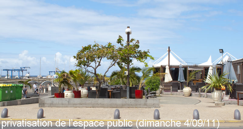 Une « Saint-Gillisation » de Saint-Pierre n’est pas notre modèle d’évolution !Et voici (encore une fois), et tout le monde peut le constater sur le front de mer de Saint-Pierre, ce que deviennent les aménagements réalisés avec des fonds européens, de l’argent public, celui des impôts !Installations à l’abandon, pas d’entretien régulier, en passant allez voir les « rustines » de contreplaqué de différentes couleurs sur les pontons à trous aux jardins de la plage à côté, et surtout regardez comment un commerçant s’étend au vu et su de toutes les autorités sur le domaine public. Cela constitue un véritable dévoiement de l’utilisation des fonds publics européens à la Réunion.