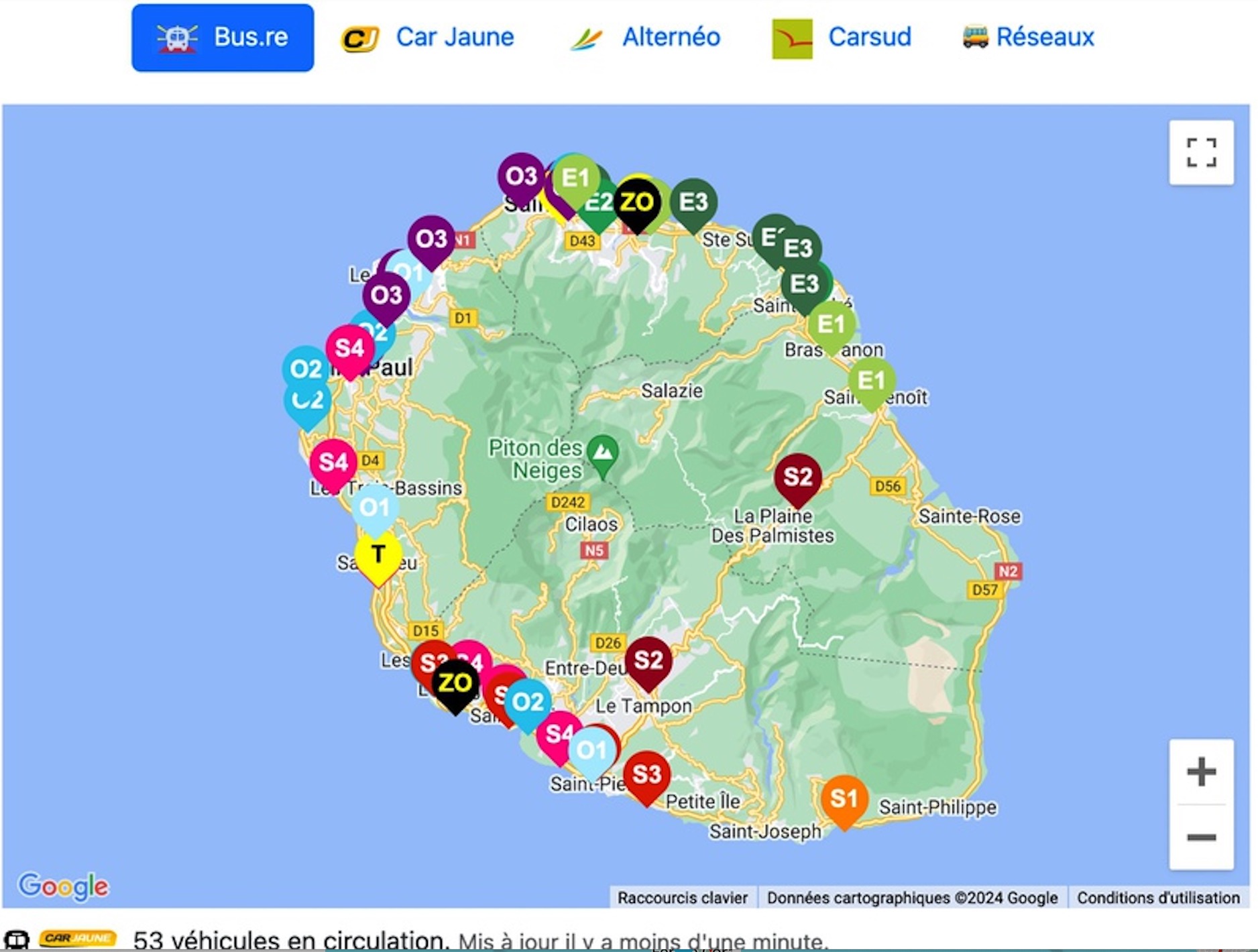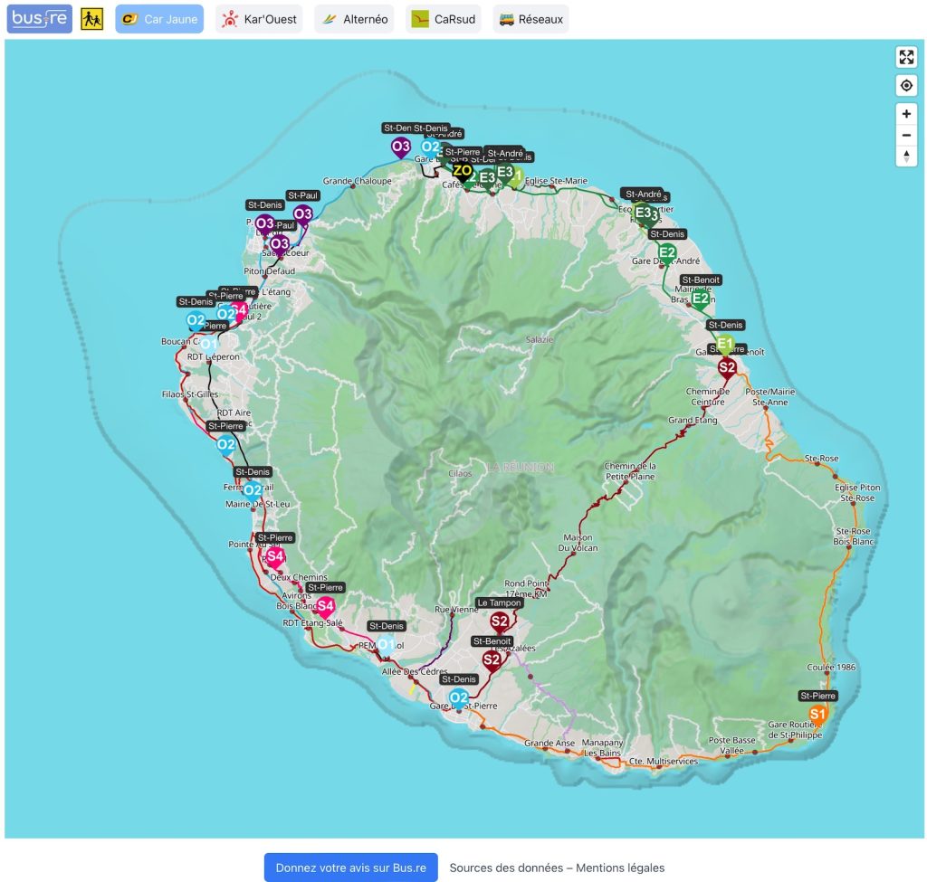Il existe 6 réseaux de transports en commun à la Réunion : Car Jaune, le réseau régional géré par la Région, et 5 réseaux urbains et interurbains, gérés par les intercommunalités.